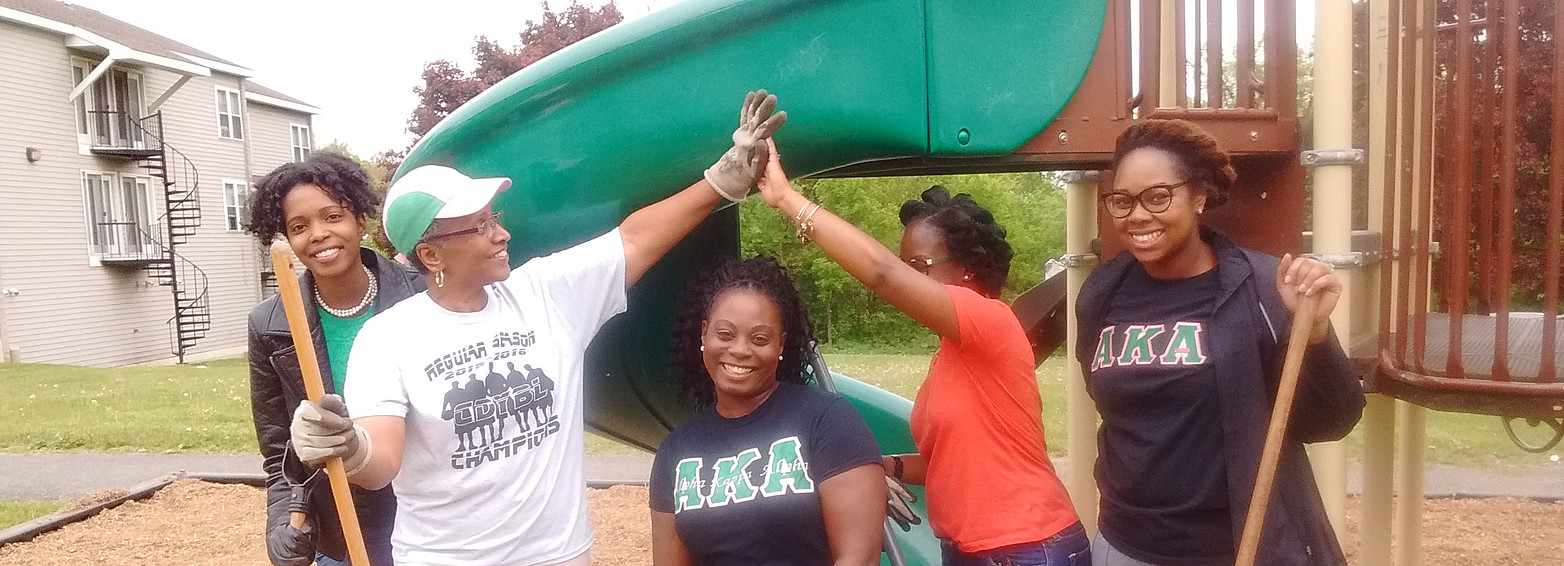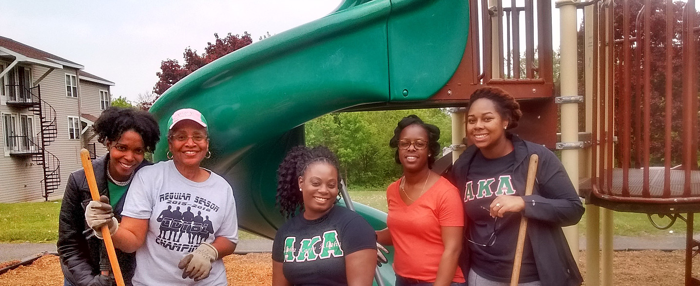 On Saturday March 21, 2016, Alpha Kappa Alpha Sorority, Inc. local chapter, Delta Mu Omega (serving the Capital District for over 47 years), partnered with the Albany Housing Authority to restore, refresh and revitalize the playground at our Capital Woods property. We provided the tools and equipment, while they provided the labor! Saturday was 1908 Playground Mobilization Day for Alpha Kappa Alpha Sorority, Incorporated and its chapters all over the world. Alpha Kappa Alpha was founded in 1908 on the principles of “Service to All Mankind” and understands that helping children engage in play contributes to success in school and beyond. Therefore, from 2014 to 2018 the membership aims to Restore, Refresh and Revitalize 1,908 playgrounds around the world to ensure safe and fun places for children to play! (For more information about Alpha Kappa Alpha and the Delta Mu Omega Chapter, please visit www.akadeltamuomega.com)