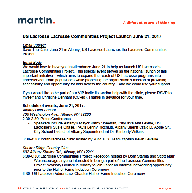 Save The Date: June 21 in Albany, US Lacrosse Launches the Lacrosse Communities Project