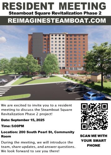 We are excited to invite you to a resident meeting to discuss the Steamboat Square Revitalization Phase 2 project!