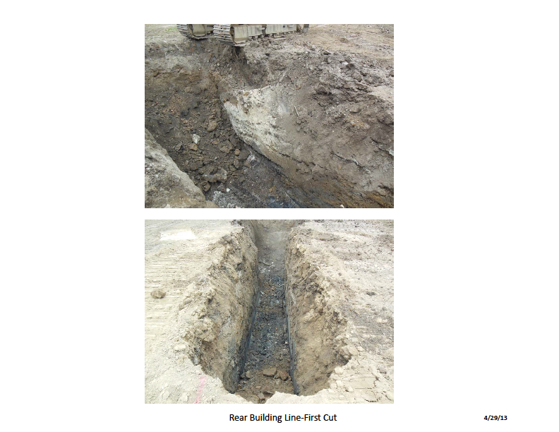 - After site clearing and preliminary staging areas were prepared building line E was excavated.